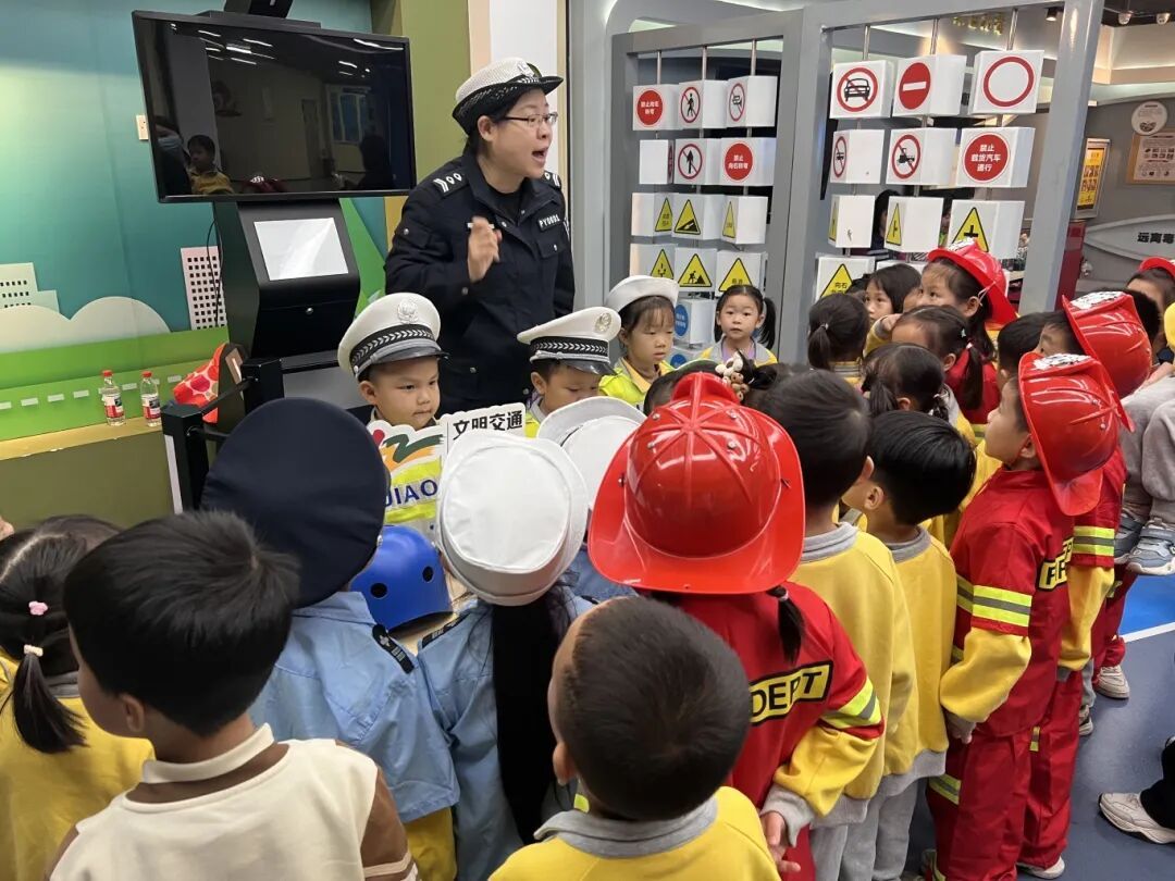 在交通安全体验区,交警同志通过趣味问答、情景模拟等方式,引导孩子们认识交通信号灯、斑马线等交通标识,牢记“红灯停、绿灯行”等基本交通规则,在互动中深化对交通安全重要性的理解;
